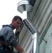 Установка системы в целом и устройство водосточной воронки в частности связаны с повышенным риском, так как монтажник вынужден выходить за защитное ограждение кровли. Поэтому монтаж водосточных воронок и водостоков лучше заказывать промышленным альпинистам, имеющим допуски на осуществление высотных работ. Для вызова специалистов звоните по тел. (495) 662-67-85.