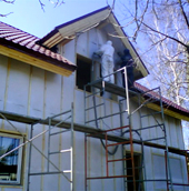 Покраска дома с монтажных лесов