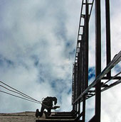 Когда применение специального оборудования и техники (лесов, монтажных люлек и автовышек) невозможно, монтаж рекламы осуществляют методом промышленного альпинизма. Такой способ удешевит и ускорит монтажные работы.