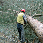 Раскряжевку спиленного дерева начинают с удаления ветвей